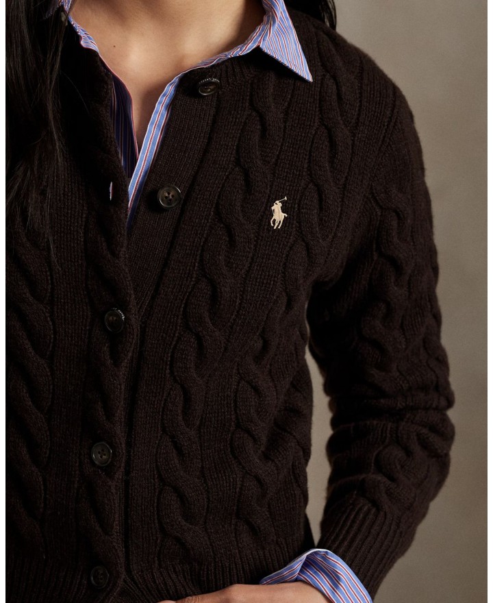 Polo Ralph Lauren cardigan da donna in lana e cashmere color marrone